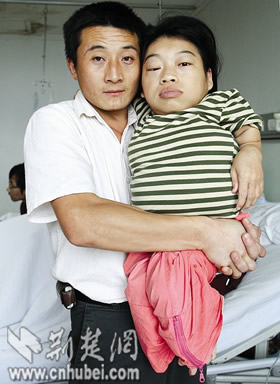 黃石市鐵山區(qū)“玻璃女孩”胡陸,因懷孕可能危及生命安全,日前到武大中南醫(yī)院求醫(yī)。昨日,記者在該院見到了她和丈夫姚國賢。