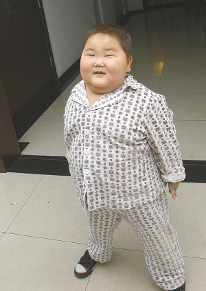 6歲的博博150斤重,眼睛瞇成了一條縫,走路都走不動(dòng)了,真的像電視劇里大頭娃娃一樣。可是他卻沒(méi)有大頭娃娃的快樂(lè),胖成這樣是因?yàn)橐荒陙?lái)他因病吃激素所致,而這一切都源于他在5歲時(shí)不幸患上了腎病綜合癥。