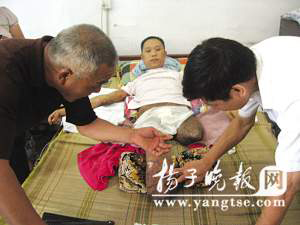 左邊臀部以下、右邊膝蓋以下已被截肢,全身都是燒傷的疤痕,但躺在床上的葛小勇并沒(méi)有像記者想象中的那樣頹廢,就在前往他家回訪的趙主任為他換藥讓他感覺(jué)疼痛時(shí),他報(bào)以家人的卻是玩笑似的語(yǔ)言:“趙主任別把我當(dāng)是你,我怕疼”。簡(jiǎn)簡(jiǎn)單單的一句話讓屋內(nèi)所有人都相視而笑。