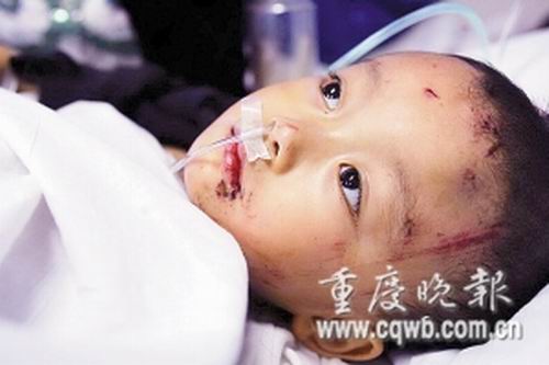 昨天(10月29日),記者在重慶市第六人民醫(yī)院見到了病床上這個叫孫浩的3歲男孩。“我不痛,我想媽媽了!睂O浩說到這里流下了眼淚。據(jù)了解,從孩子出事到現(xiàn)在,其父母一直沒有出現(xiàn),一直是干媽守在醫(yī)院。