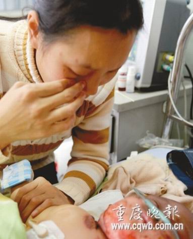 昨日(12月25日),在重醫(yī)附屬兒童醫(yī)院病房,文文在監(jiān)護(hù)儀的監(jiān)視下,奄奄一息。醫(yī)生稱,文文傷情特別嚴(yán)重,頭部頸部大面積燙傷。