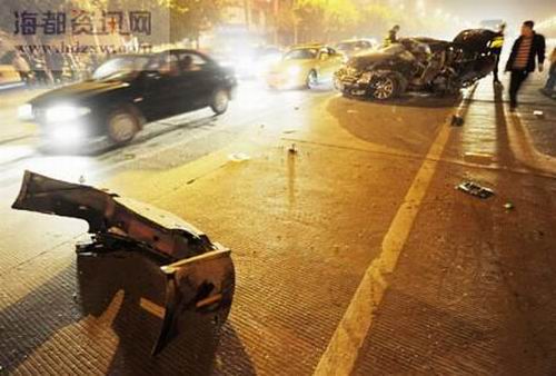 當(dāng)時就在附近的摩的司機范師傅說,轎車當(dāng)時正從南二環(huán)路拐進(jìn)則徐大道,速度很快,到了交通島附近,車子突然騰空而起,在空中翻了七八個跟頭,摔在則徐大道由南向北的車道上。車子在空中時,正好越過一位騎電摩路過的女子,把她嚇壞了。