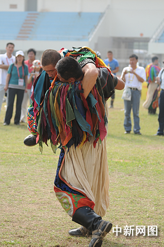 中新網(wǎng)泉州10月31日電 (劉通)今天上午,第六屆全國農(nóng)民運動會在福建泉州繼續(xù)進(jìn)行。“搏克”(蒙古族摔跤)雖是本屆農(nóng)運會中國式摔跤比賽中的一個小項,但卻極富觀賞性和趣味性。無論服飾、入場儀式還是比賽規(guī)則都帶有獨特鮮明的民族色彩。