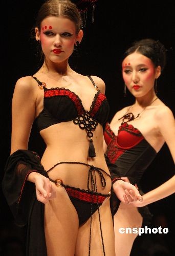 中國國際時裝周2009春夏系列發(fā)布在北京開幕。11月5日,中國國際時裝周(2009春夏系列發(fā)布)在北京隆重開幕,來自國內(nèi)外的40多個知名品牌和時裝設(shè)計師以及150余位設(shè)計新人、時尚之星將在為期一周的時間里在北京飯店和D-PARK北京時尚設(shè)計廣場舉辦時裝發(fā)布、專項大賽、時尚論壇、新聞發(fā)布、專題講座、展覽展示等近70項活動。本屆時裝周發(fā)布的品牌和設(shè)計師主要來自國內(nèi)和港、臺地區(qū),另有2家韓國品牌和設(shè)計師參與。時裝周期間將舉辦45場動態(tài)發(fā)布活動,其中,有36場時裝、成衣、化妝造型設(shè)計2009春夏系列趨勢發(fā)布。圖為開幕式上的內(nèi)衣創(chuàng)新元素設(shè)計大賽。