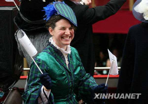 11月8日,在英國首都倫敦,一名著傳統(tǒng)服裝的女子參加新當選的金融城市長的就職巡游。新華社記者謝秀棟攝