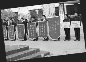 百姓自發(fā)送書(shū)記,錦旗、萬(wàn)民傘、清官旗齊了