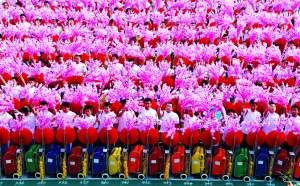 今年國(guó)慶廣場(chǎng)背景翻花表演中,有近900名學(xué)生來自北京四中。在這些演出主力軍中,還穿插著23名替補(bǔ)隊(duì)員。他們將為信號(hào)盲區(qū)傳遞信號(hào),同時(shí)頂替臨時(shí)缺席的學(xué)生。據(jù)了解,每個(gè)替補(bǔ)隊(duì)員要負(fù)責(zé)所轄區(qū)域內(nèi)的100人的情況。事實(shí)上,這些被稱作替補(bǔ)隊(duì)員的學(xué)生必須熟悉轄區(qū)內(nèi)每個(gè)隊(duì)員的翻花動(dòng)作,承擔(dān)著“精英隊(duì)員”的任務(wù)。