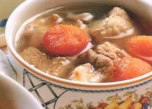 蘿卜海帶湯:海帶100克、桂花10克、姜5片、蘿卜1個(gè)約300克。把蘿卜削皮切成小塊,用1500毫升水以大火煮沸,先放蘿卜、海帶、姜片,待水再度滾時(shí)轉(zhuǎn)成小火,直到蘿卜、海帶煮爛熟,最后加入用紗布包著的桂花,再煮15分鐘即可。每日午餐、晚餐前先喝湯吃料。蘿卜能消積滯及清理腸胃;海帶性咸寒,常食能清血管中的多余血脂。(佚名)