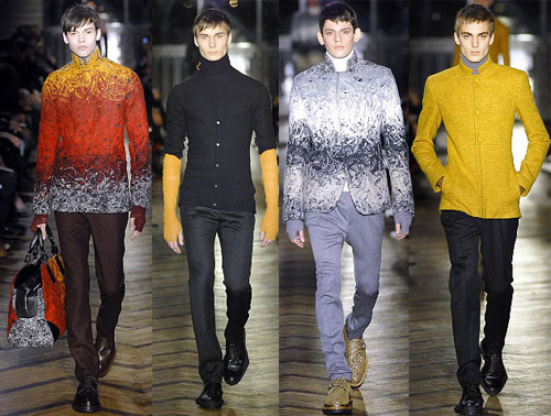 在男裝界,從80年代開始,每隔10年就是一次新舊世界的大更替,原來的明星失去了創(chuàng)新的能力,轉(zhuǎn)而鞏固技藝;新的明星脫了邊緣色彩,成為新一輪標準的制定者。在2008秋冬季的男裝舞臺上,沒有以往Dior Homme似的“逐鹿中原”的兇猛勢力,來自新舊兩個世界的設計師各自照亮頭頂?shù)囊黄炜铡km然看不到刺激的新銳力量很遺憾,卻應了一句老話:“百花齊放,百家爭鳴!