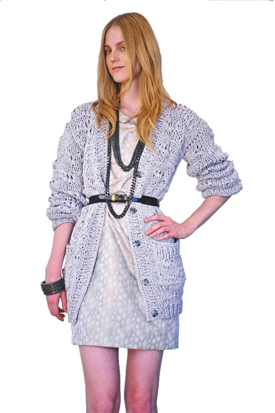 。牬送,將棒針針織與雪紡或起毛皮革等不同面料進行搭配,可讓針織衫呈現全新的表情。由于棒針毛衣帶給人本身已經很狂野了,所以在色彩的選擇上以黑色、茶色和紅色為主,雖說流行,但也有人一穿這種灰暗的顏色就顯得老土,怎么辦呢?這就要靠值得玩味的細節(jié)了。比如抽帶、細皮條和大紐扣……(舒志娟)