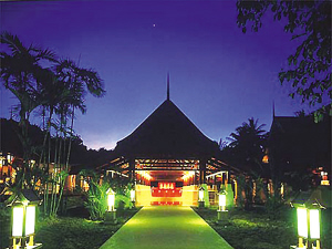 穿梭在“月之影”,你會(huì)有一種時(shí)光停滯的感覺,棕黑色的木柱和白色的基座相互輝映,構(gòu)成了一種古樸的格調(diào),那是一種懷舊的情緒,又滲透著一絲迷人的高貴。據(jù)說,度假村的木材全都取自這個(gè)島上,特別耐用,是一種非常珍貴的木料。雖然已經(jīng)是一個(gè)聞名于世的度假勝地,但是月之影仍然恪守著最傳統(tǒng)的馬來習(xí)俗。每天上午11點(diǎn)左右,島上就會(huì)出現(xiàn)一群穿著當(dāng)?shù)貍鹘y(tǒng)服裝的人,走在前排的人捧著手鼓,中間的人舉著彩帶纏繞的樹枝,后面的人捧著水罐,唱著歌繞“月之影”走一圈。這是他們每天要為島上的SPA進(jìn)行的一個(gè)引水祈福儀式。