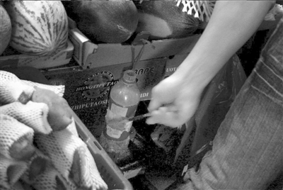 該市場管理員王女士說,市場里很多攤主都將水果刀放在礦泉水瓶里,主要是為了衛(wèi)生。當記者提及瓶里的水是甜水時,她說,“不可能,我相信攤主不會這么干”。(王遠志 商秋雯 彭科峰)