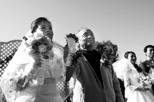 集體婚禮由一家婚戀網(wǎng)主辦,此次共有新人11對,都是通過網(wǎng)絡(luò)走到一起的。吳介琴是中央美院退休教授,在新人里年齡最大,愛人蔣曉輝女士58歲,是成都鐵路系統(tǒng)退休員工。