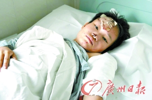 10月24日,楊某從6樓摔下已經(jīng)6天了,此時(shí)的她才完全清醒過來。記者見到她時(shí),她正躺在醫(yī)院病床上接受治療。她的頭部、左手臂、左腳都綁著紗布,因傷勢(shì)很重,動(dòng)彈不得。得知記者前來采訪,一身傷痕的她,欲言又止,但她的眼神里似乎充滿了恨與無奈。