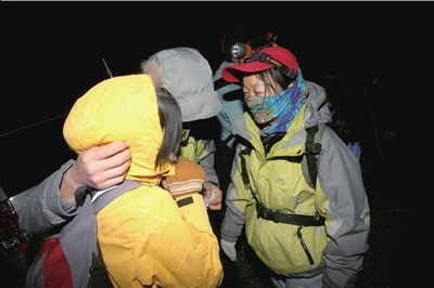 “海貓”是綠野救援隊的隊長。據(jù)他介紹,由于被困的6名網(wǎng)友佩戴著GPS,接到求助后,通過電話聯(lián)系他們很快確定了6人被困的坐標(biāo)!爱(dāng)時6人只帶了2-3升水和一頓午餐,隨著溫度越來越低,隨時面臨著失溫的危險”。救援隊員迅速集結(jié)。當(dāng)晚8點多,第一組救援隊員根據(jù)坐標(biāo)向6人被困地點進發(fā)。