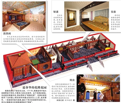 位于故宮乾隆花園內(nèi)的倦勤齋,是乾隆為自己1795年退位后使用而預(yù)建的。乾隆生前曾下諭旨,將紫禁城寧壽宮一帶保留為太上皇宮殿。自從末代皇帝溥儀1924年遷出故宮以后,乾隆花園一直封閉,從未開放過(guò)。