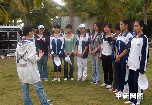 (海南外國(guó)語學(xué)院的志愿者一早趕到彩排現(xiàn)場(chǎng),集中精力聽從歡樂節(jié)導(dǎo)演指示)