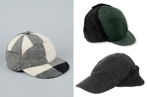 順時(shí)針, 左起: Opening Ceremony 伐木工人棒球帽, $143; L.L. Bean 監(jiān)獄看守帽, $45; J. Crew羊毛棒球帽, $58.