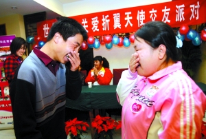 昨日上午10時,相親會正式開始。50余名殘疾人拿起小紙條,填上基本情況后,跟著主持人玩起“幸福拍手”游戲,他們希望遇到屬于自己的緣分。