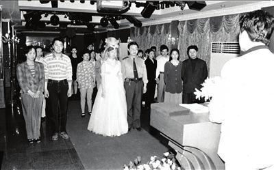 1998年5月11日,婚姻登記員向登記領(lǐng)結(jié)婚證的青年宣讀法律規(guī)定的有關(guān)夫妻的權(quán)利與義務(wù)。濟南市民政局婚姻登記管理處當(dāng)年在向婚姻當(dāng)事人分發(fā)結(jié)婚證書時,一改過去簡單、隨意的現(xiàn)象,而是為男女雙方舉行發(fā)證儀式,讓新婚夫婦感受到領(lǐng)取結(jié)婚證的神圣與莊嚴(yán)。