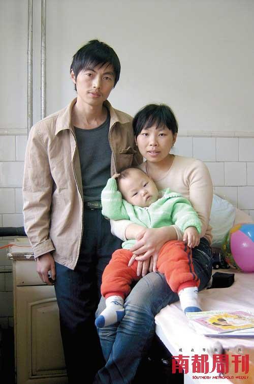 13個月大的結(jié)石寶寶楊歡和父親楊勇、母親李小紅在徐州市兒童醫(yī)院病房