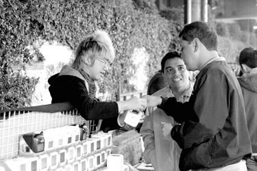 記者觀察,夜市的消費(fèi)者多為二三十歲的年輕人,女性也有不少,還有一些像記者這樣慕名而來體驗(yàn)一下夜市風(fēng)情的游客,但這部分人比例不算大。據(jù)介紹,在臺(tái)灣,逛夜市的大部分都是本地居民,夜市對(duì)于他們來說,不但是可以大快朵頤填飽肚子的地方,同時(shí)也是很好玩的地方,逛街,殺價(jià),打打彈珠、撈撈金魚,在眾人的圍觀下為自己剪一幅栩栩如生的剪影,在各種具有玩樂性質(zhì)的攤位上試試手氣,這些,都很適合一家老少共同出游消磨一晚的時(shí)光。