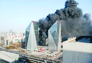 “轟”的一聲,一股黑色濃煙從樓頂騰空而起,“像大樓爆破一樣。”一名目擊的出租車司機(jī)介紹說(shuō),當(dāng)時(shí)他正開(kāi)車經(jīng)過(guò)樂(lè)成國(guó)際購(gòu)物中心,隨著一聲炸響,購(gòu)物中心三樓頂層的設(shè)備間起火,四周的隔板都隨著顫動(dòng),火苗也從擋板縫隙往外躥,“我開(kāi)車到了廣渠門(mén)內(nèi),還能看見(jiàn)濃煙!