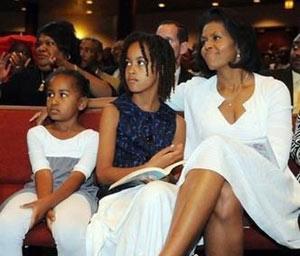 很少看到奧巴馬全家都出動(dòng)的場(chǎng)面。這次妻子與兩個(gè)女兒一起為他助威。白色幽雅的長(zhǎng)裙讓奧巴馬的妻子看起來(lái)很平時(shí)很不一樣。純白的顏色把她巧克力色的肌膚襯托的美麗動(dòng)人。設(shè)計(jì)感十足的圓領(lǐng)加V領(lǐng)不僅時(shí)尚幽雅,還有些性感的味道。這樣的長(zhǎng)裙穿在她身上顯示出十足的準(zhǔn)第一夫人架勢(shì)。