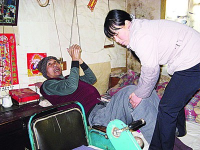 說起菊會(huì),索海存愧疚地說:“我的好兒媳勝似親女兒呀!沒有她,恐怕我早就死了。唉!這些年真是拖累她了!惫P床多年消化不好,不能吃辛辣過硬的食物,任菊會(huì)慢慢掌握了老人的飲食規(guī)律和口味,變花樣做老人喜歡吃、有助于消化的飯。老人癱瘓?jiān)诖玻刻煲粩喾,要不身體就會(huì)長褥瘡。任菊會(huì)就隨身帶一塊表,每三個(gè)小時(shí)就幫公公翻一次身。