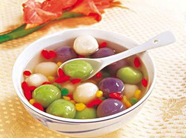 正月十五吃元宵,“元宵”作為食品,在我國(guó)也由來(lái)已久。宋代,民間即流行一種元宵節(jié)吃 的新奇食品。這種食品,最早叫“ 浮元子”后稱(chēng)“元宵” ,生意人還美其名曰“元寶” 。元宵即"湯圓"以白糖、玫瑰、芝麻、豆沙、黃桂、核桃仁、果仁、棗泥等為餡,用糯米粉包成圓形,可葷可素,風(fēng)味各異?蓽、油炸、蒸食,有團(tuán)圓美滿(mǎn)之意。陜西的湯圓不是包的,而是在糯米粉中"滾"成的,或煮司或油炸,熱熱火火,團(tuán)團(tuán)圓圓。