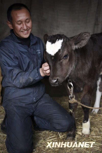 據(jù)小牛的主人、農(nóng)場主山崎介紹,“小心”剛出生時(shí)體重40公斤,身長85厘米。山崎一家人對它精心照料,還專門給它騰出一個(gè)“房間”。短短半個(gè)月,它的體重和身長已長到45公斤和1米,十分健康可愛。
