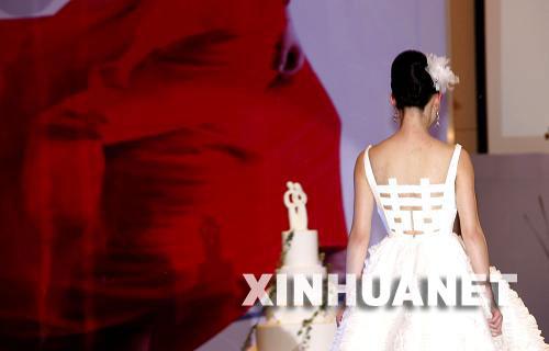 當(dāng)日,一場(chǎng)“中國(guó)風(fēng) 婚禮秀”在上海希爾頓酒店舉行。模特們展示以紅、白、綠、黃為色調(diào)的婚紗,給在場(chǎng)的準(zhǔn)新人和來(lái)賓們帶來(lái)美的享受。