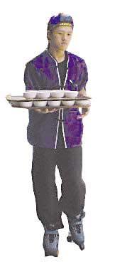飯店在前臺(tái)還提供一個(gè)彩頁介紹,上面說飯店每天能供應(yīng)2萬份菜,最多時(shí)每天要進(jìn)1萬多種活海鮮和水果、3.5噸大米、2.5噸肉和2噸蔬菜。最快時(shí),每小時(shí)就能做出3000盤菜來。飯店共有2.45萬個(gè)盤子,刀叉1.7萬副,僅廚房面積就有740平方米。人們一般來這里用餐都會(huì)說成是吃“豪華溜冰餐”,因?yàn)轱埖昝娣e大,送菜的服務(wù)員都穿著溜冰鞋,在連接25個(gè)各具特色的大小餐廳間的回廊里穿梭。