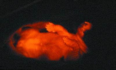 研究小組利用擁有紅熒光蛋白的基因,在2007年12月成功讓代孕母狗產(chǎn)下6條小獵兔犬。其中兩條不幸夭折,但剩余4條都存活了下來。