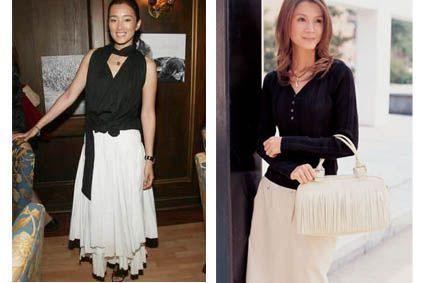 在飄逸的白色圓裙上,搭配合身的上衣。想穿著白裙子時,圓裙比長筒緊身裙更能掩飾過胖的身材。合身的深色上衣和白色大圓裙,巧妙地襯托出纖細的腰身。一串復(fù)古的長項鏈點綴,使你成為韻味十足的淑女。