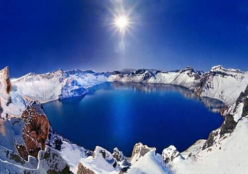 長白山天池又稱白頭山天池,坐落在吉林省東南部,是中國和朝鮮的界湖,湖的北部在吉林省境內(nèi)。長白山系復(fù)合式盾形休眠火山,為中國東北和歐亞大陸東部最高峰,是松花江、鴨綠江、圖們江之源。史料記載天池水“冬無冰,夏無萍”,夏無萍是真,冬無冰卻不盡然,冬季冰層一般厚1.2米,且結(jié)冰期長達(dá)六、七個月。不過,天池內(nèi)還有溫泉多處,形成幾條溫泉帶,長150米,寬30- 40米,水溫常保持在42攝氏度,隆冬時節(jié)熱氣騰騰,冰消雪融,故有人又將天池叫溫涼泊。