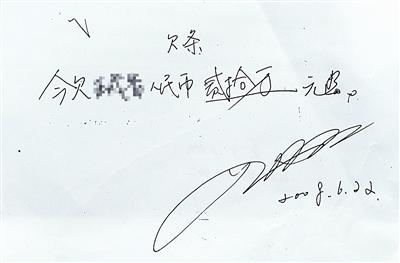 楚楚說(shuō),這張20萬(wàn)欠條的簽名,有8條弧線,是雅暉的藝術(shù)簽名