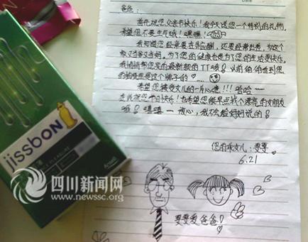 記者詳細(xì)查看該帖發(fā)現(xiàn),在這篇名為《父親節(jié)收到讀初中的女兒送的禮物竟然是安全套》的帖子中,發(fā)帖者還附上了避孕套的圖片和女兒的親筆信。圖片上,女兒稚嫩的字跡清晰可見,文末還配上了象征父親和女兒的素描漫畫。