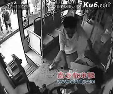 視頻同時出現(xiàn)在酷6視頻網(wǎng)站及湖南本地的紅網(wǎng)永州論壇。視頻顯示,一名眼戴墨鏡、肩挎黑包的持匕首的男子在多人追趕下,緊張地沖上一輛剛好進(jìn)站的公交車,用刀威脅女司機(jī)馬上開車。女司機(jī)不慌不忙,既沒花容失色,也沒大聲尖叫,聲調(diào)都沒變高,只是要男子冷靜,要求先放乘客們下去。
