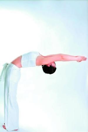 這是瑜伽中的“拱橋”動作,對久坐者的腰椎很有好處,難度也比較大。沒有瑜伽基礎(chǔ)的人可以簡化動作: 先仰臥,腿微屈,用手肘把身體支撐成一個拱形。