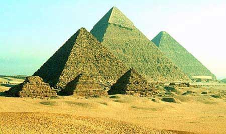 在古代埃及文中,金字塔是梯形分層的,因此又稱作層級金字塔。這是一種高大的角錐體建筑物,底座四方形,每個側(cè)面是三角形,樣子就像漢字的"金"字,所以我們叫它"金字塔"。