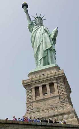 如果要追溯這座神像的來(lái)源,可以由當(dāng)年法國(guó)為慶賀美國(guó)獨(dú)立一百周年而贈(zèng)送一事說(shuō)起,這座象征著兩國(guó)友誼的自由女神像,左手拿著獨(dú)立宣言,右手高舉火炬,雙眼平視前方,充份散發(fā)了英姿風(fēng)范。她鼓勵(lì)著無(wú)數(shù)為實(shí)現(xiàn)理想而到美國(guó)的移民,因此她不但是紐約的象征,更是美國(guó)的象征。