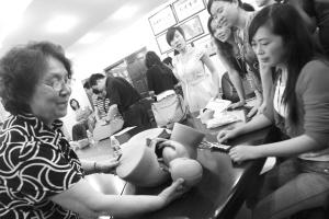 產(chǎn)科專(zhuān)家蓋教授(左)為“產(chǎn)科高級(jí)生命支持教程”培訓(xùn)班講課 記者 姚波 攝