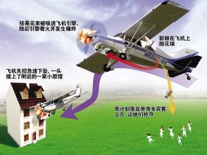新人宣誓儀式結(jié)束后,早早坐在飛機(jī)上手捧一束鮮花的新娘伊西多羅彭西爾里開始高空拋花,就在花束飛出飛機(jī)的那一刻,恐怖一幕發(fā)生了:飛機(jī)引擎轉(zhuǎn)動產(chǎn)生的巨大吸力瞬間就吞掉了這束花,隨后引擎著火并發(fā)生爆炸,最后墜毀在附近一家50人居住的旅館上,幸運的是旅館里的人都沒有受傷。