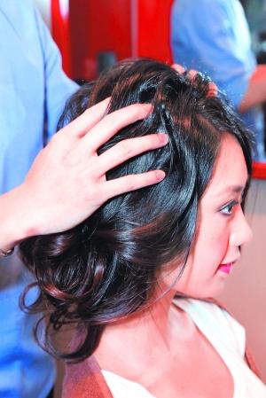 Step3將馬尾的頭發(fā)向內(nèi)屈,屈至中間時(shí)用發(fā)夾夾緊,側(cè)面的頭發(fā)則要稍微抓松。