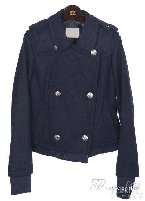 御寒必備外套一:灰色翻領(lǐng)呢絨短款外套