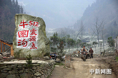 映秀鎮(zhèn)除了保留漩口中學(xué)地震遺址外,還準(zhǔn)備開發(fā)極具視覺震撼力的牛圈溝震源點。震源點位于映秀鎮(zhèn)西南十一公里的山溝深處,鎮(zhèn)前瀑布高懸,溪水長流,可謂世外桃源。地震發(fā)生時,從瀑布口處迸發(fā)出的震源石直接撞擊對面山體形成一個百余米高的沖擊坡,反彈后又繼續(xù)向下沖擊山溝另一面形成沖擊坡,如同“波子機(jī)”般幾經(jīng)反復(fù)在牛圈溝形成了一個長八百米、寬一百三十米、厚八十米的巖石堆積區(qū),埋葬了溝內(nèi)三十三戶村民的房屋,奪走了二十三人的生命。溝內(nèi)現(xiàn)在堆積著幾百萬立方米的碎石,巖石噴發(fā)處的瀑布口兩側(cè)山體表層土壤完全被蕩平,原巖裸露,讓人觸目驚心地感受到地震巨大的沖擊力。