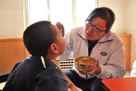 儀式結(jié)束后,雅士利愛(ài)心小組在青海省慈善總會(huì)領(lǐng)導(dǎo)的引領(lǐng)下來(lái)到西寧市兒童福利院。在福利院四樓,愛(ài)心小組與孤殘兒童一起做互動(dòng)游戲,現(xiàn)場(chǎng)喜氣洋溢、充滿(mǎn)歡聲笑語(yǔ)。隨后,愛(ài)心小組在醫(yī)護(hù)人員的指導(dǎo)下仔細(xì)、認(rèn)真地為孤殘兒童喂食午餐,這一幕,如冬日暖陽(yáng)一般溫暖著孩子們的心靈。在福利院的大廳里有一個(gè)功德園,上面記錄了歷年來(lái)為兒童福利院捐款、捐物的單位和個(gè)人的名單和捐助金額,其中有國(guó)內(nèi)外福利機(jī)構(gòu)以及省內(nèi)外的企業(yè)和個(gè)人。據(jù)李永蓮院長(zhǎng)介紹,自?xún)和@撼闪⒁詠?lái),受到了社會(huì)各界人士的極大關(guān)懷和幫助,從1998年至今,西寧市兒童福利院共接受社會(huì)各界捐款、捐物有人民幣954719.46元,130美元,2725歐元。李院長(zhǎng)說(shuō),社會(huì)各界對(duì)孩子們的關(guān)注和愛(ài)護(hù),給孩子們帶來(lái)了希望,有力地促進(jìn)了公益、福利事業(yè)的全面發(fā)展。