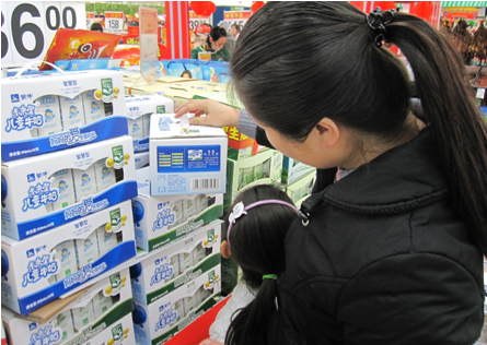 圖為媽媽為孩子選購(gòu)兒童牛奶