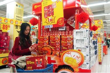 中新網(wǎng)2月9日電 春節(jié)將至,各大超市紛紛推出各種喜慶的年貨。蒙牛紅色“牛運(yùn)金虎”和白色剪紙版紀(jì)念包裝牛奶,在今年的牛奶產(chǎn)品中尤為搶眼,許多消費(fèi)者就是沖著大紅包裝的喜慶感和頭上頂著“!弊郑⒁狻芭_\(yùn)當(dāng)頭”的小老虎來(lái)的。業(yè)內(nèi)人士表示,除了蒙牛牛奶過(guò)硬的品質(zhì)外,產(chǎn)品中承載的“牛運(yùn)文化”是其產(chǎn)品暢銷的主要原因。